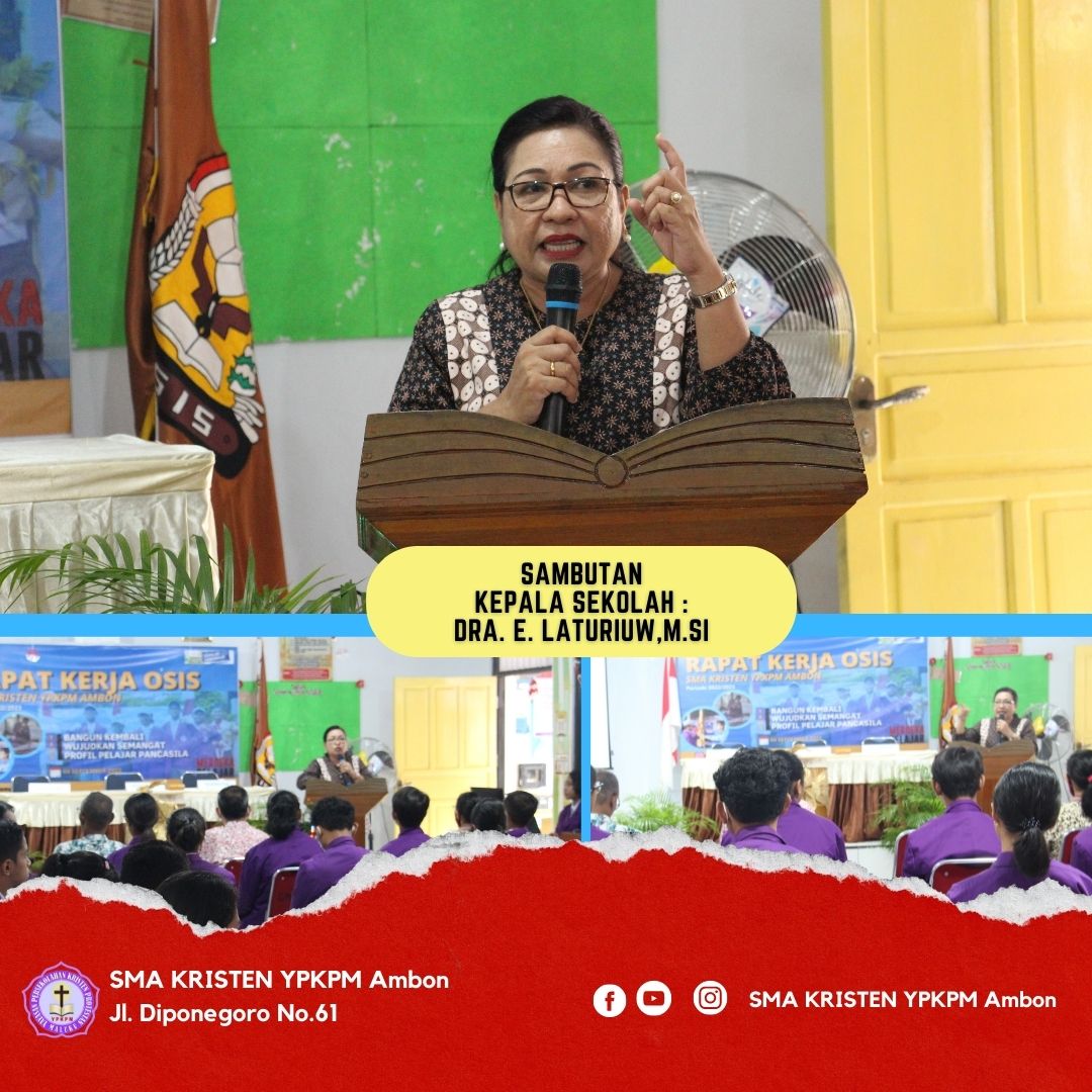 SMA Kristen YPKPM Ambon, menggelar rapat kerja Osis periode 2022/2023 di Aula sekolah. Tugas Organisasi Siswa Intra Sekolah ( OSIS ) haruslah mempropagandakan praktek-praktek baik sebagai implementasi profil pelajar Pancasila karena SMA Kristen YPKPM adalah sekolah penggerak angkatan pertama di kota Ambon. sesuai tema “ Bangun kembali wujudkan semangat profil pelajar Pancasila“ demikianlah sambutan Ibu Kepala SMA Swasta Kristen YPKPM Ambon Dra E. Laturiuw, M.Si dalam rapat kerja yang digelar pengurus OSIS SMA Swasta Kristen YPKM Ambon pada hari Sabtu, 3 September 2022 yang bertempat di aula sekolah.