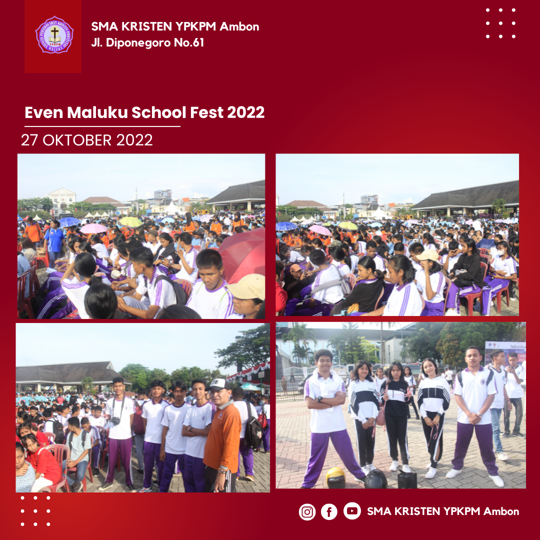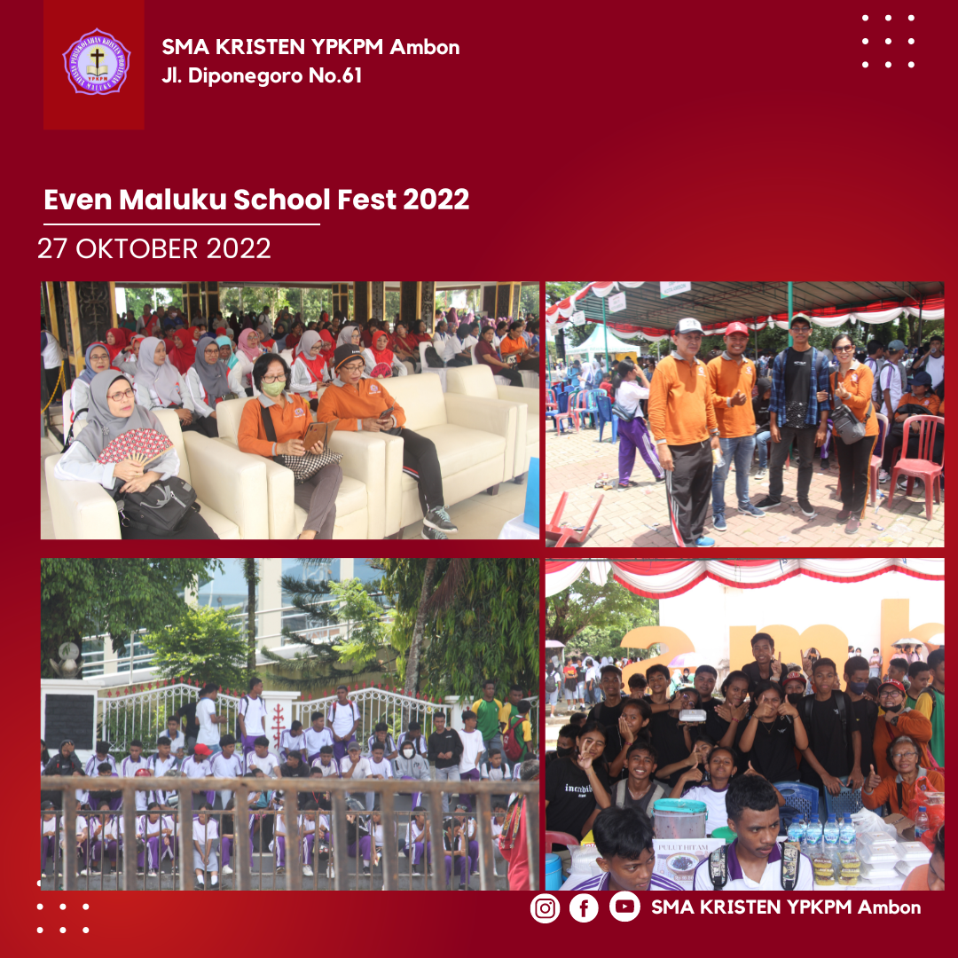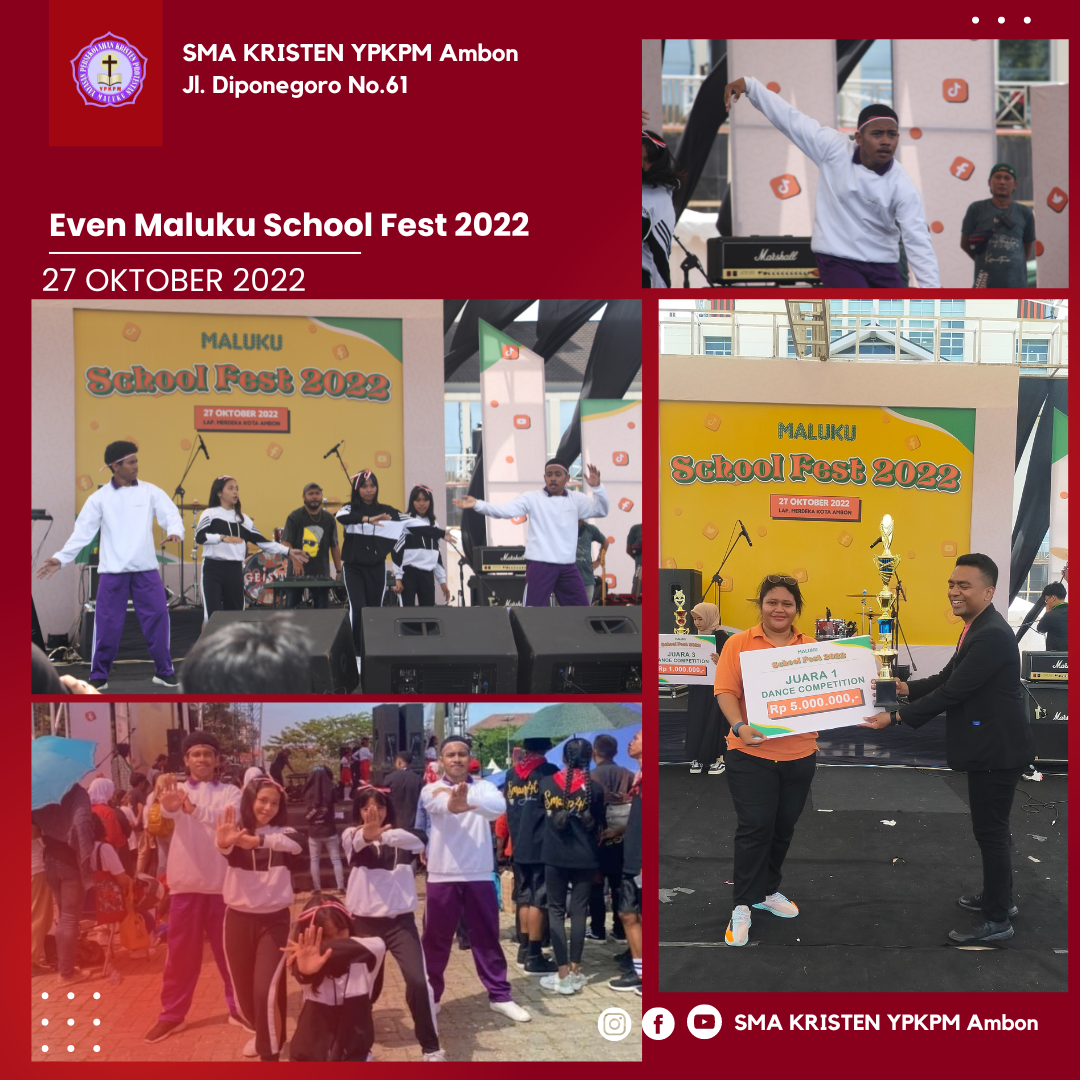 SMA Kristen YPKPM – meraih juara pertama kompetensi dance dan turut memeriahkan even Maluku School Fest 2022. Kamis, 27 Oktober 2022.
