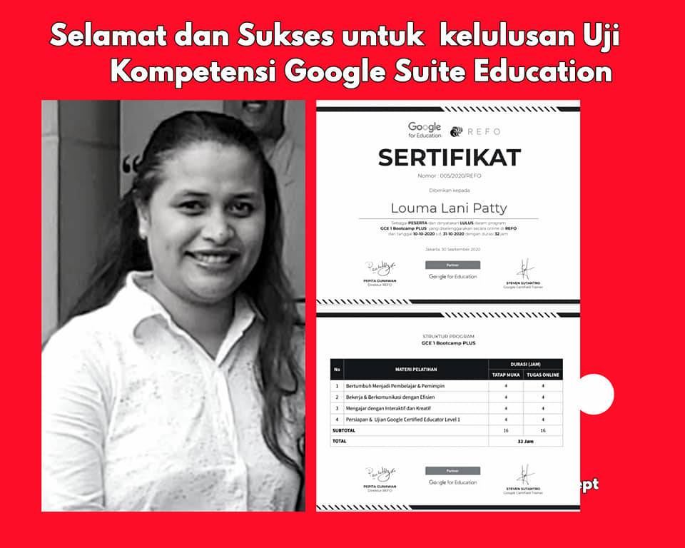 Keberhasilan ini diresponi oleh Kepala sekolah Dra E Laturiuw, M.Si “ saya memberikan apresiasi dan penghargaan yang tinggi atas prestasi yang di capai .Keberhasilan ketiga guru ini akan menjadi motivasi bagi para guru yang lain untuk tidak sekedar tahu menggunakan GSE tetapi secara tidak langsung MERASAKAN MANFAATNYA dan MENERAPKANNYA dalam pembelajaran maupun aktifitas yang lain karena menggunakan GSE secara kreatif ”