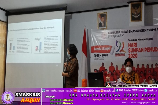 Assesmen Nasional ( AN) adalah pemetaan mutu pendidikan di seluruh satuan pendidikan. Ada tiga instrumen yang di gunakan untuk AN antara lain Assesmen Kompetensi Minimum, Survey Karakter dan Analisis Lingkungan Belajar, Agar ada kesepahaman bersama atas Informasi AN ini maka pada hari ini Ibu Novie Choesni SPd. MPd berkenan memberikan pencerahan kepada seluruh Guru di SMA Krisetn YPKPM Ambon